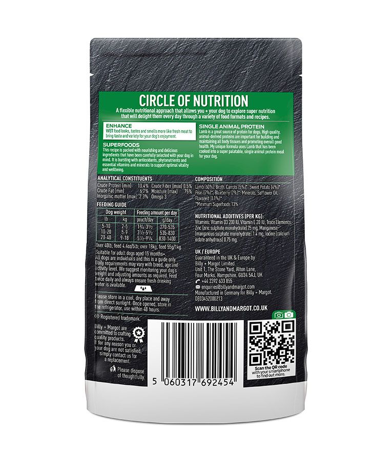Billy & Margot Lamb with Superfoods Adult Wet Dog Food 150g Pouch
