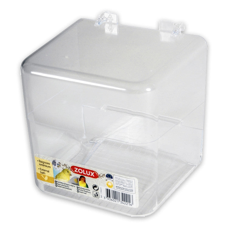 Bath for domestic birds to be hung out of the cage.