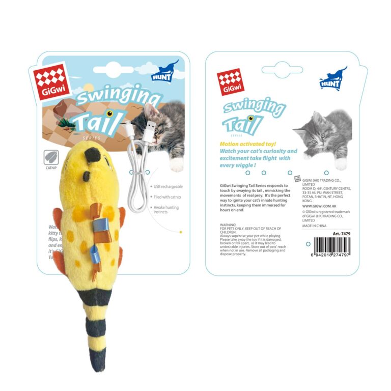- Two Tail-Wagging Modes: The toy features two tail-wagging modes—up-and-down or side-to-side—providing varied and engaging play options for your cat.