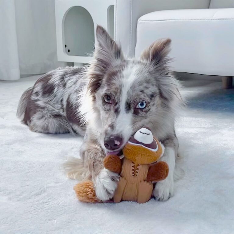 Textured Rubber Back for Dental Health:The finely textured rubber back not only adds durability but also helps clean your dog’s teeth as they chew, promoting better dental hygiene during play.