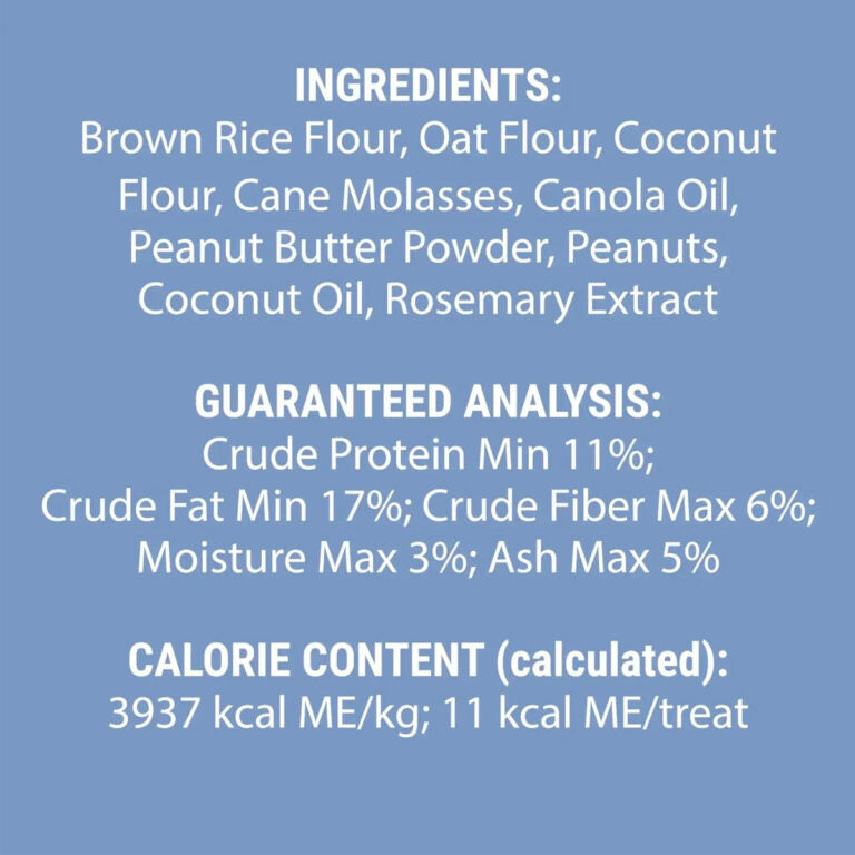 Peanut Butter Cookies smell and taste great, with mouthwatering flavors of peanut butter and cane molasses. Our oven-baked cookies are packed with nutrient-rich ingredients and wholesome goodness for your dog’s health and happiness. Himalayan Dog Treats® are 100% natural with no gluten, wheat, corn, artificial flavors, or preservatives and are easily digestible. These bite-sized cookies are great for a fun time snack or as a training treat for a job well done. The perfect treat for any age, breed, or size dog