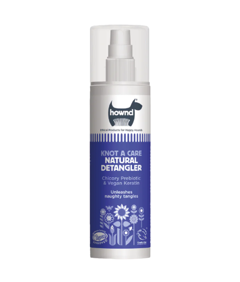 Introducing Hownd Knot A Care Natural Dog Detangler, the ultimate solution for effortlessly removing knots and tangles from your dog's coat. Our natural, silicone-free formula is pH balanced and perfect for managing curly and matted fur. Safe for daily use, it's ideal for puppies aged 12 weeks and older.