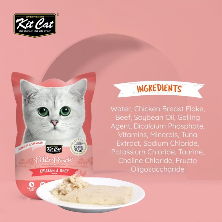 Kit Cat Petite Wet Food is formulated to meet all the nutritional levels established by AAFCO Cat Food Nutrient Profiles. This certifies that Kit Cat Petite Pouch is a nutritionally complete product that can be fed to your cat as its sole ration without adding any other substance except water.