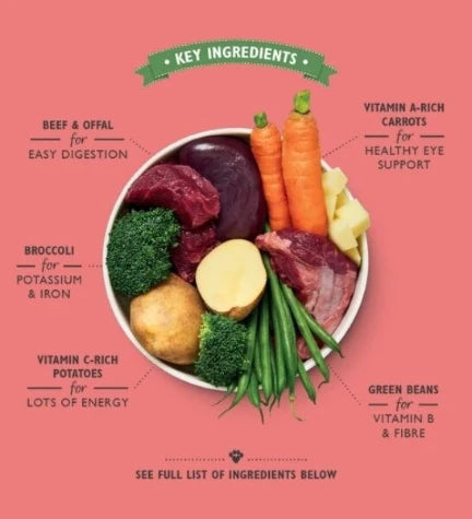 The Lily's Kitchen Cottage Pie is made with fresh beef and tasty produce making it a delicious and complete wet food for your pet dogs. It contains vitamins and minerals along with potato, carrots, broccoli, green beans and apples, as well as beneficial herbs your dog needs for a healthy diet. This formula is free of grain and loaded with natural and nutritious ingredients plus it comes in a size that is perfect for your little pooches.