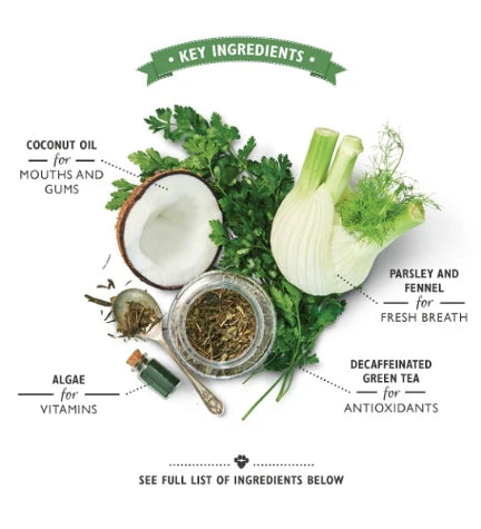 The Woofbrush has been carefully crafted in Lily's Kitchen with help from their pet dental expert to make sure it works and tastes great, Using top-notch natural ingredients like parsley, coconut oil, and fennel for a proper clean without the added nonsense. We recommend a Woofbrush a day to help support your dog’s dental health and this pack of 7 dental chews is just right for larger dogs (over 26kg) to have one each day of the week. Suitable from 6 months old.