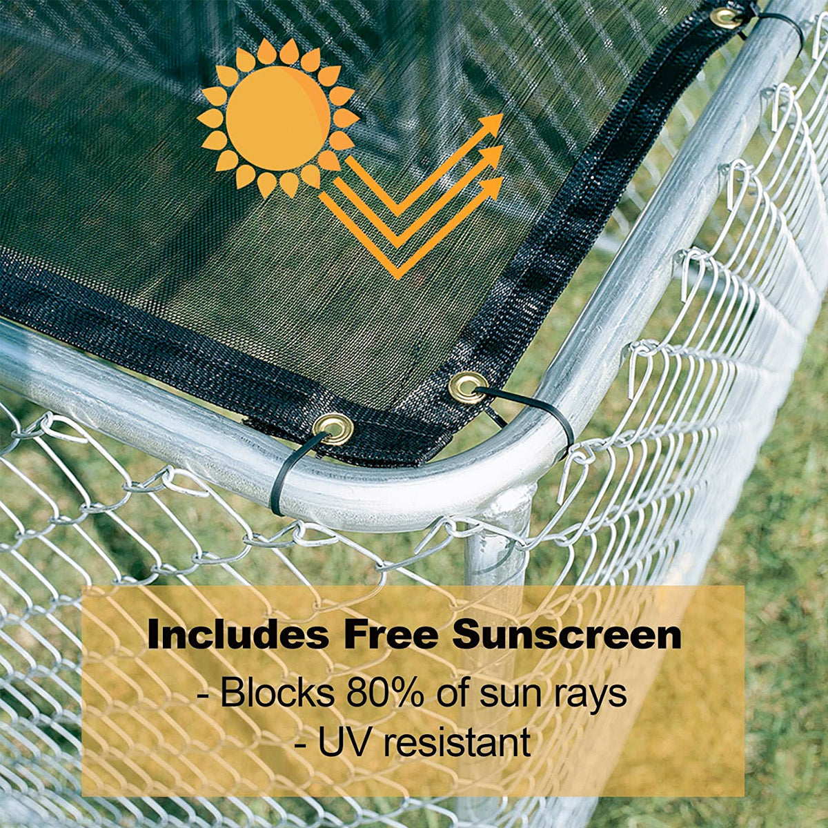 - Free sunscreen for outdoor Safety – Large Dog kennel includes a free protective woven polyethylene fabric sunscreen that provides 80% sunblock