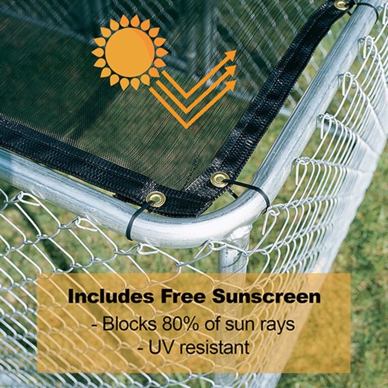 Keep your furry friend safe and secure in the K9 Kennel®. The K9 Kennel®’s strong, galvanized steel frame and chain-link mesh construction provides extra stability to ensure years of use with little upkeep or maintenance. The patented design offers maximum stability with interlocking steel tubes and rounded corners for safety. The lightweight design makes it easy to reposition anywhere around the yard. Your dog can enjoy the outdoors while giving you the peace of mind that he is being protected by a polyethylene sunscreen cover and secured by a safety latch.