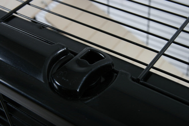 Trendy cage for large small animals designed on wooden feet. Adapted to each breed: bars are spaced according to the animal. Raised cage and levels provide animal a wider view of the environment. Large opening on the top and on the front to easily catch the animal. Finishing touches: solid wooden legs and ""NEO by ZOLUX"" is engraved on the first level. Made in Europe.