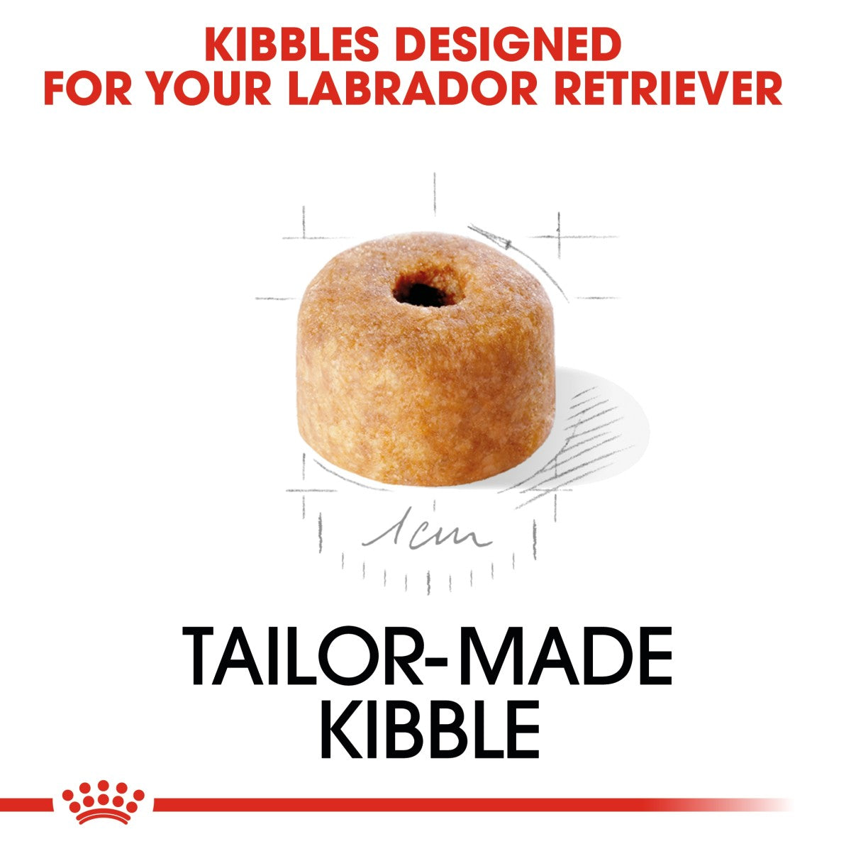 Suitable for puppies up to 15 months old, ROYAL CANIN® Labrador Retriever Puppy is specially formulated with all the nutritional needs of your young Labrador Retriever in mind. Because your puppy’s immune system develops gradually, ROYAL CANIN® Labrador Retriever Puppy contains an exclusive complex of antioxidants – including vitamin E – to help support its natural defences during this key period of growth. Thanks to a specially adapted content of energy, protein, calcium and phosphorus, ROYAL CANIN® Labrador Retriever Puppy contributes to the healthy development of your growing puppy’s bone structure. It also helps to facilitate harmonious weight gain, to help your puppy maintain an ideal weight as it grows. ROYAL CANIN® Labrador Retriever Puppy contains a combination of nutrients with high quality protein (L.I.P.*) and prebiotics (FOS) to support digestive health and balance of intestinal flora. What’s more, they also help to contribute to good stool quality. The kibble in ROYAL CANIN® Labrador Retriever Puppy is tailor-made and specially adapted for the Labrador puppy. The shape and size of the kibble makes it easy for your puppy to pick up and chew, whilst the texture enhances its overall palatability.