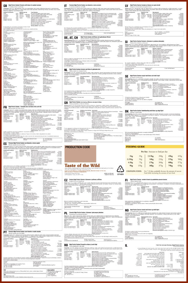Taste of the Wild High Prairie Canine Recipe is formulated to meet the nutritional levels established by the AAFCO Dog Food Nutrient Profiles for maintenance.
