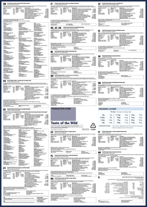 Taste of the Wild Pacific Stream Canine Recipe is formulated to meet the nutritional levels established by the AAFCO Dog Food Nutrient Profiles for maintenance.