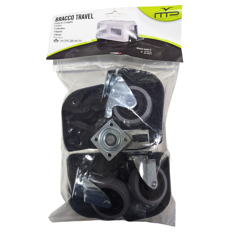 - Four-wheel kit for Bracco Travel allow us to bring our dog carrier Bracco from side to side easily and comfortably and with a very simple installation.