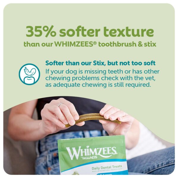 EASIER TO CHEW: Our new Soft chews are crafted with peas and are 35% softer than our WHIMZEES Adult Stix or Brushzees, providing a gentle cleaning solution for your dog.